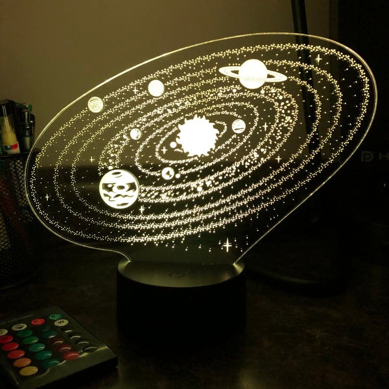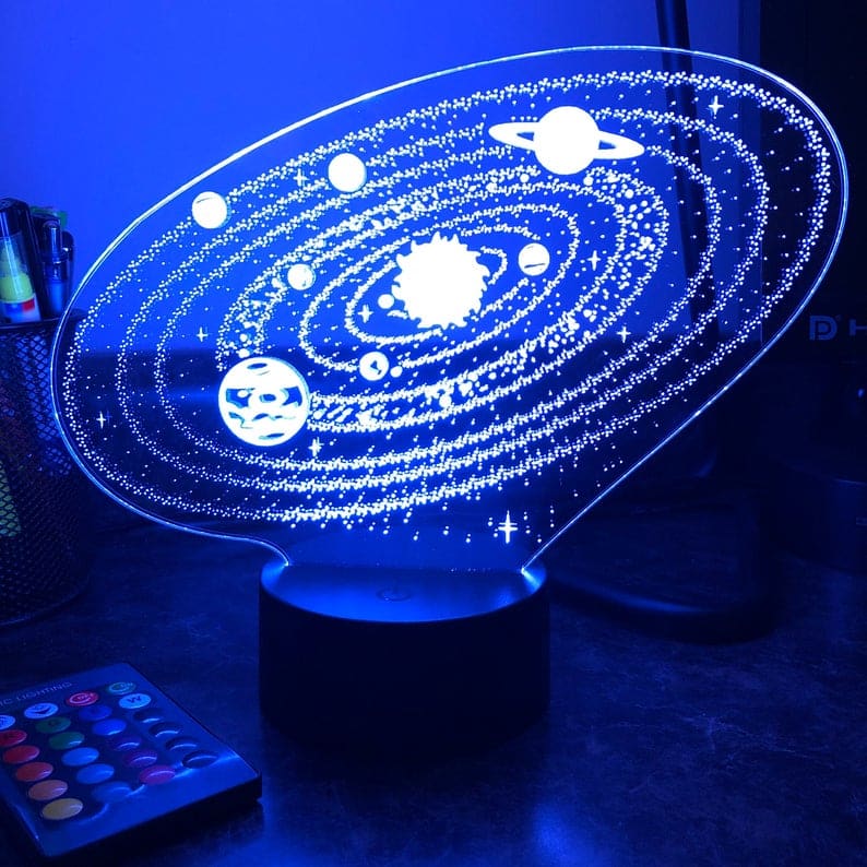 Aurinkokunta 3D LED-yövalo kaukosäätimellä