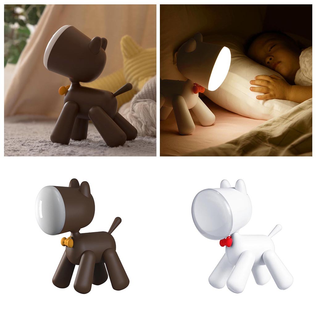 - Suloinen koiramuotoilu: Ystävällinen koirahahmo punaisella rusetilla on samalla sekä valaisin että uusi paras ystävä, joka odottaa kärsivällisesti seuraavaa iltaa.
