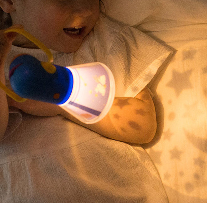 Anna lahja, joka valaisee lapsesi unia ja leikkejä – tämä lasten yövalo projektorilla ja taskulampulla odottaa!