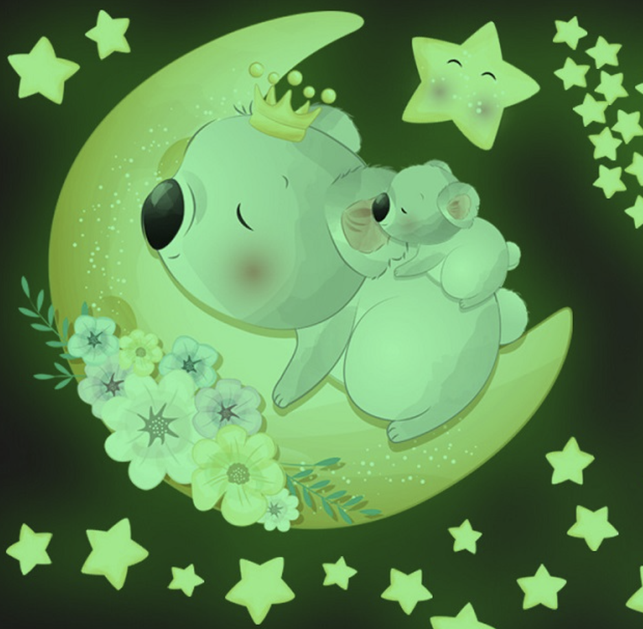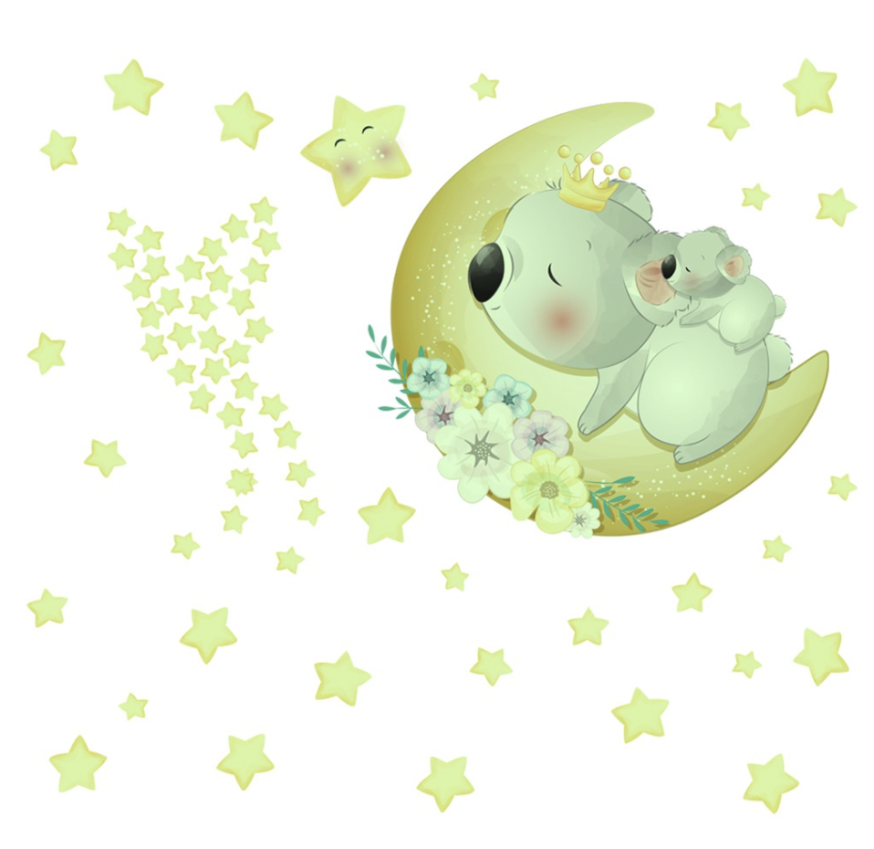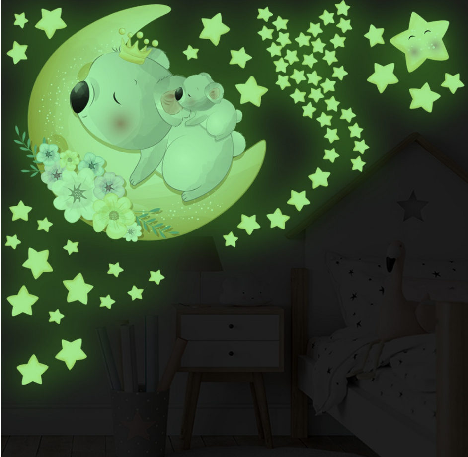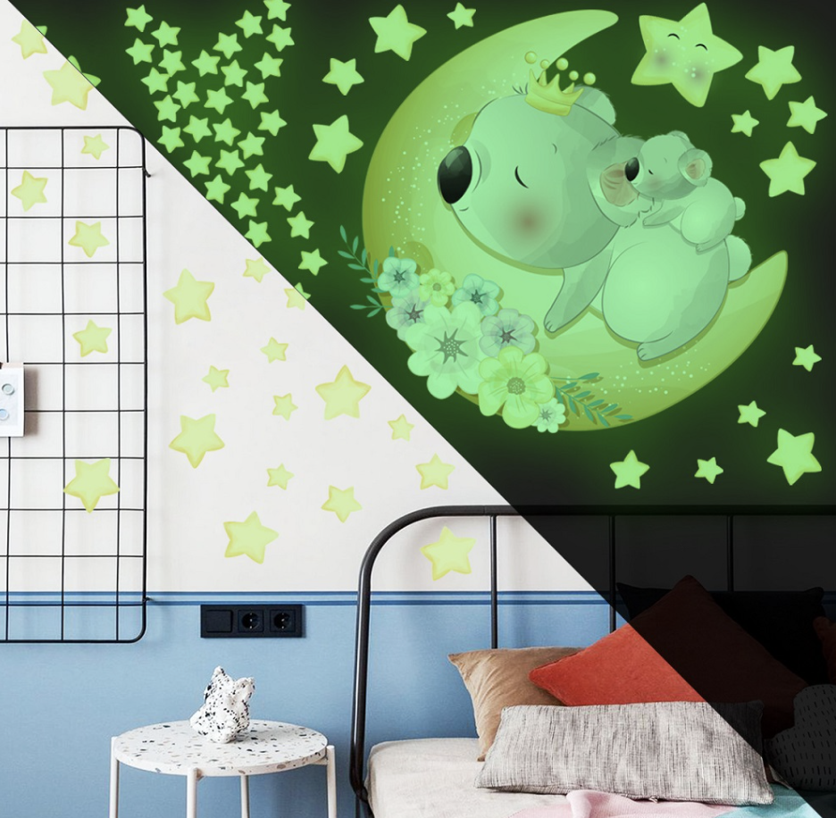 Lisää taikaa lastenhuoneeseen: Pimeässä hohtava koala ja tähdet seinätarra