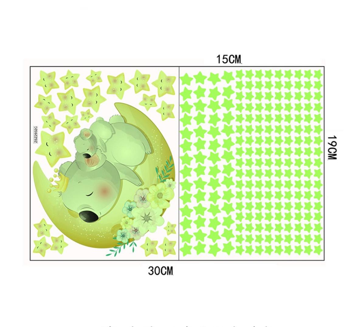 Uniikkia tunnelmaa: Pimeässä hohtava koala ja tähdet seinätarra yksityiskohdat