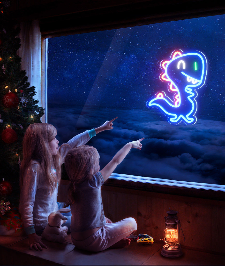 Anna lapsellesi lahja, joka valaisee heidän huoneensa ja heidän unelmansa joka ilta. Tämä sininen dinosaurus neon-yövalo seinälle on paljon enemmän kuin valaisin – se on uuden tarinan alku ja lohduttava ystävä pimeän tullessa.