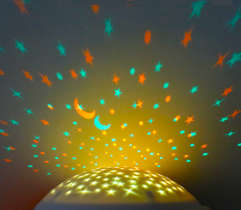 - Taianomainen tähtiprojektori: Heijastaa rauhoittavan tähtitaivaan ja kuun huoneen kattoon, luoden unenomaisen ilmapiirin.