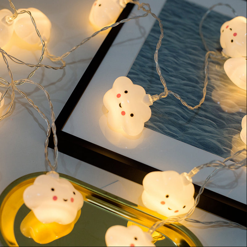 - **Iloinen ja turvallinen design:** Jokainen pilvi on suloisen hymyilevän näköinen, ja valot on valmistettu kestävistä, lapsiturvallisista materiaaleista.